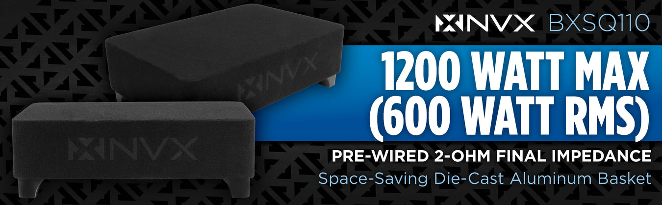 BXSQ110 1200W Peak (600W RMS) Sealed 2-Ohm Loaded Enclosure with Single 10" SQ-Series Shallow-Mount Subwoofer