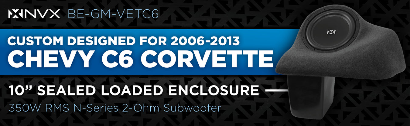 2006-2013 Chevy Corvette Bass Package - Includes 10" 350W RMS Subwoofer, Custom Enclosure, Monoblock Amplifier, Line Out Converter and Complete Wiring Kit (PBK-BE-GM-VETC6)