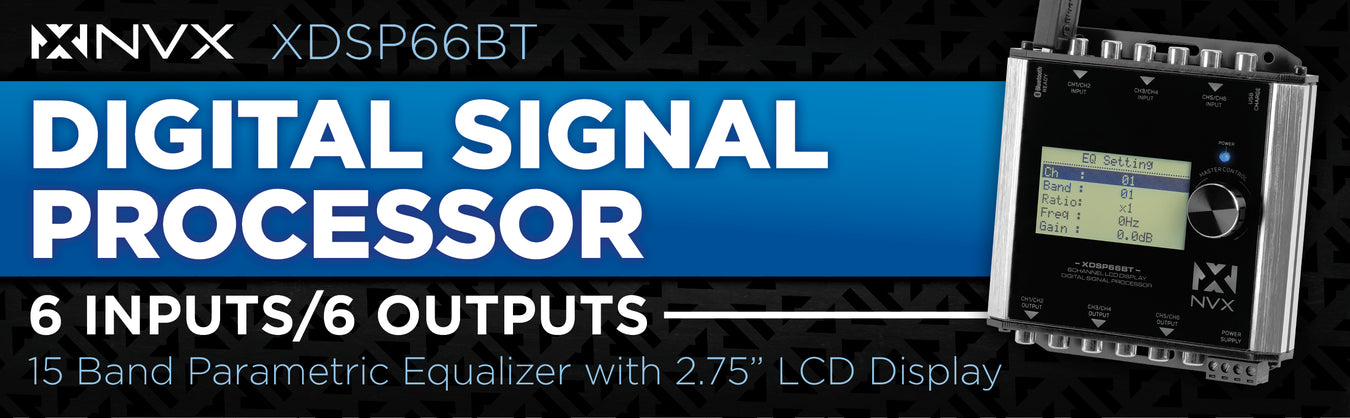 XDSP66BT 6-Channel X-Series 15 Band Parametric EQ Digital Signal Processor (DSP) with 2.75" LCD Display and Includes Bluetooth USB adapter for Music Streaming