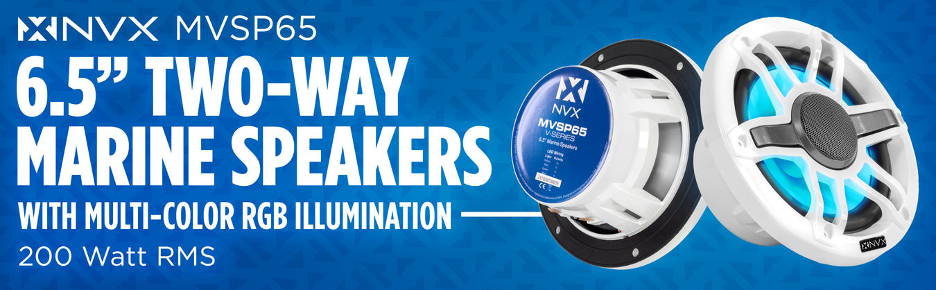 MVSP65 600W Peak (200W RMS) 6.5" V-Series 2-Way Marine Speakers with LED Lighting (Sport White and Black Grilles Included)