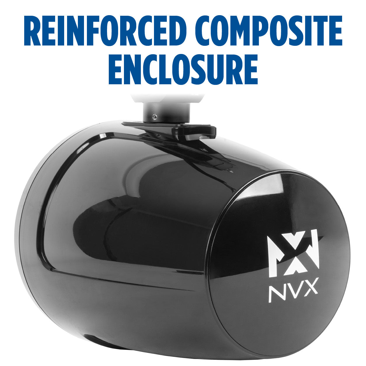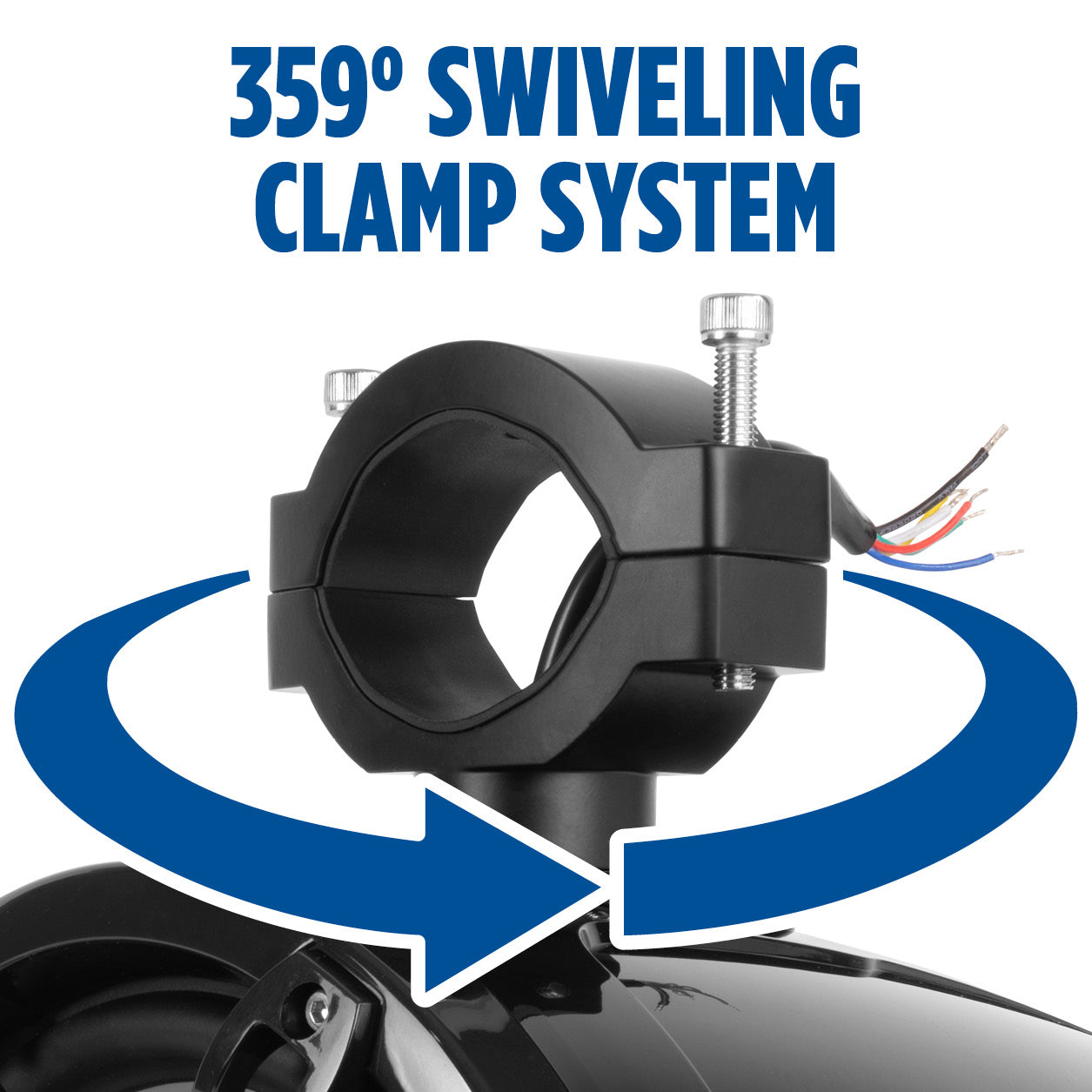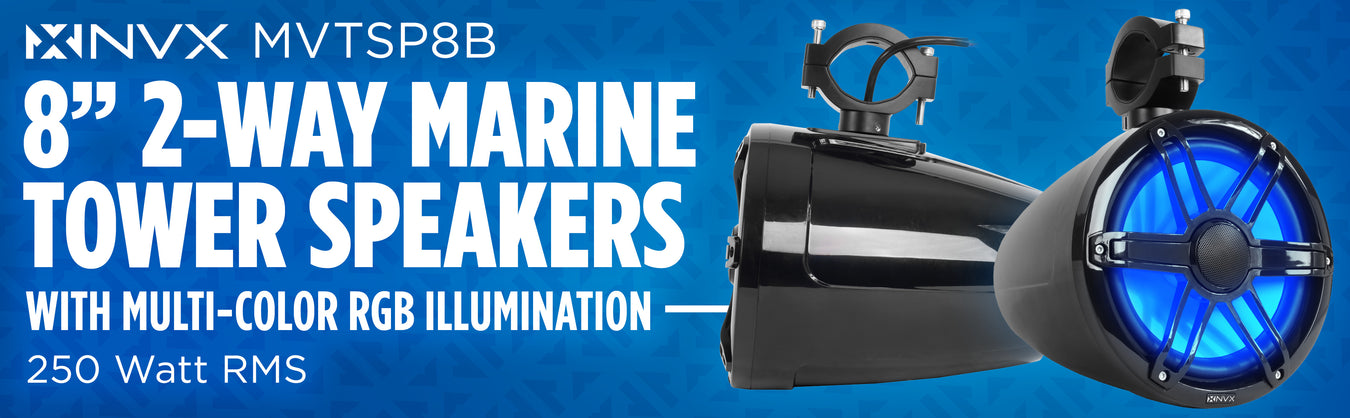 MVTSP8B 375W Peak (125W RMS) 8" V-Series 2-Way Marine Tower Speaker with LED Lighting and Swiveling Clamp (Sport Black) Sold Individually