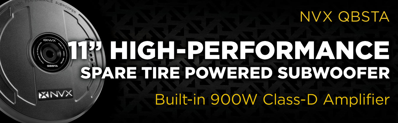 QBSTA 900W Peak (300W RMS) 11" Quick Bass Spare Tire Amplified Subwoofer System with Remote Bass Level Control