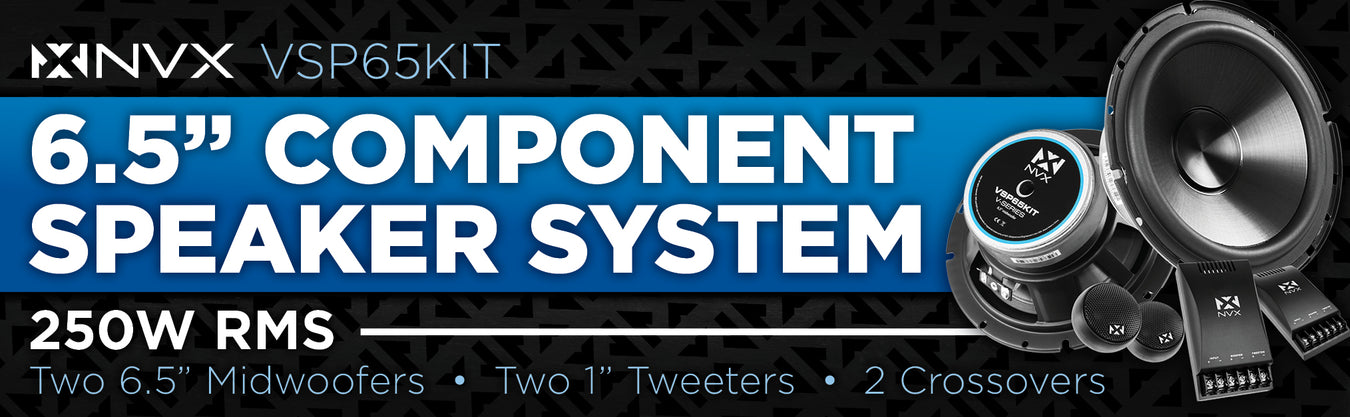 VSP65KIT 750W Peak (250W RMS) 6.5" V-Series 2-Way Component Speakers with 25mm Silk Dome Tweeters