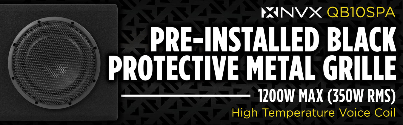 QB10SPA 1200W Peak (350W RMS) Single 10" Amplified Ported Loaded Subwoofer Enclosure with Remote Bass Knob