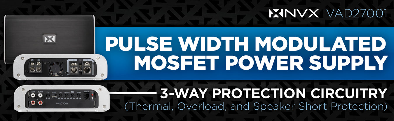 • 3-way protection circuitry (thermal, overload, and speaker short protection)