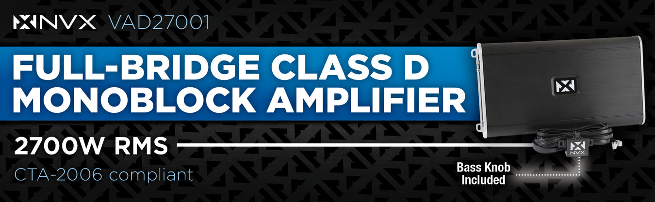 VAD27001 2700W RMS V-Series Class-D 1-Ohm Stable Monoblock Amplifier (Marine Certified)