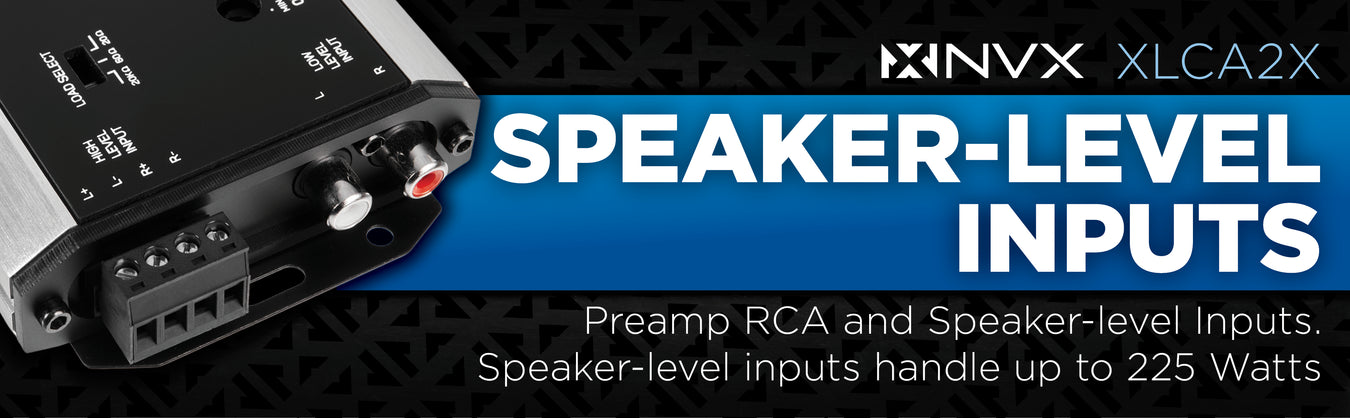 - Speaker-level inputs handle up to 30V (225 watts RMS)